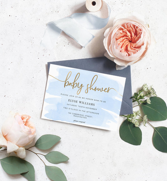 Watercolour Blue | Printable Baby Shower Invitation Suite