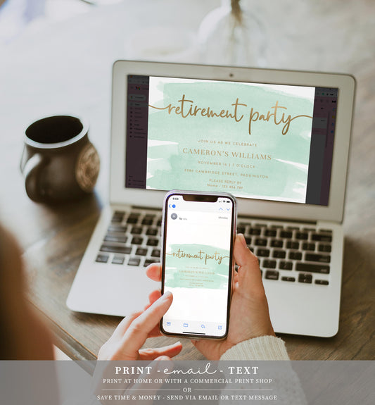 Watercolour Green Gold | Printable Retirement Party Invitation Template