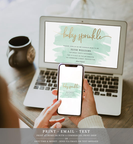 Watercolour Green | Printable Baby Sprinkle Invitation