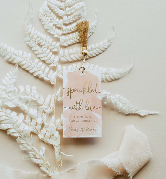 Watercolour Peach Gold | Printable Sprinkled With Love Favour Tag Template