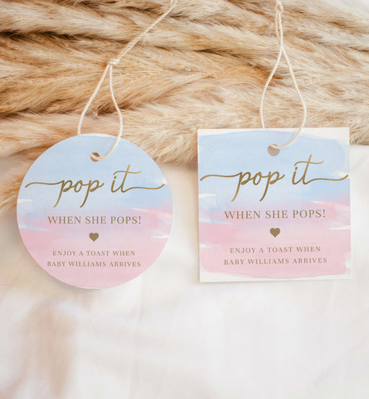 Watercolour Pink Blue | Printable Pop It Favour Tags Template