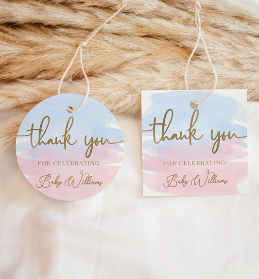 Watercolour Pink Blue | Printable Thank You Favour Tags