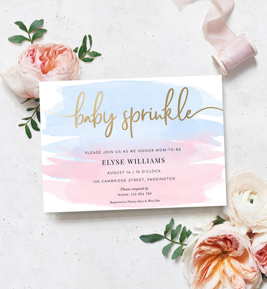 Watercolour Pink Blue | Printable Baby Sprinkle Invitation