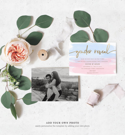 Watercolour Pink Blue | Printable Gender Reveal Invitation