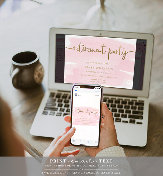Watercolour Pink Gold | Printable Retirement Party Invitation Template