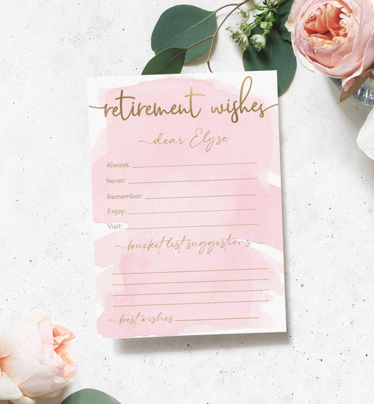Watercolour Pink Gold | Printable Retirement Wishes Card Template