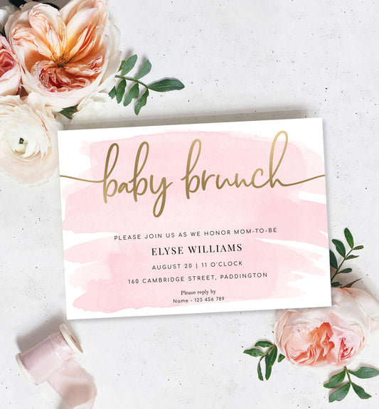 Watercolour Pink | Printable Baby Brunch Shower Invitation Suite