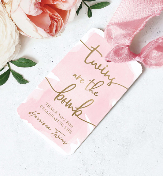 Watercolour Pink Gold | Printable Twins Bath Bomb Favour Tag Template