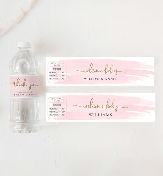 Watercolour Pink Gold | Printable Water Bottle Labels Template