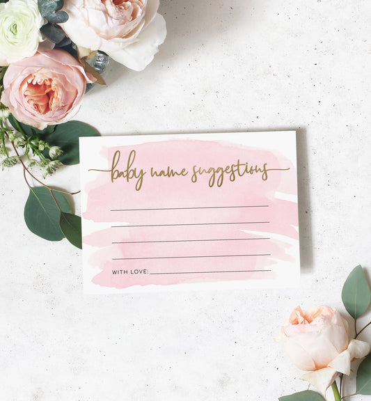 Watercolour Pink | Printable Baby Name Suggestion Game