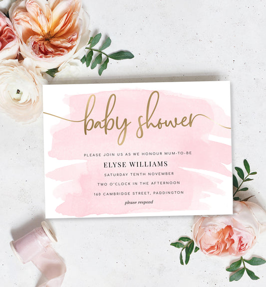 Watercolour Pink | Printable Baby Shower Invitation Suite