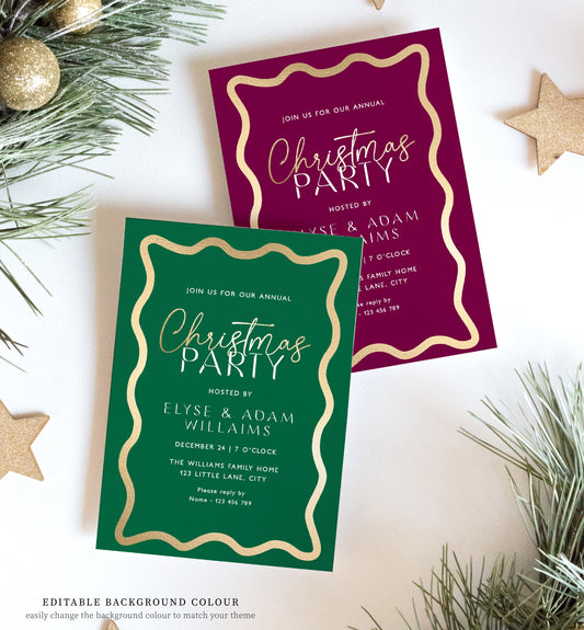 Wave Green Gold | Printable Christmas Party Invitation Template