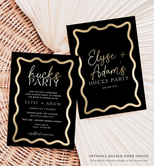 Wave Black Gold | Printable Hucks Party Invitation Template