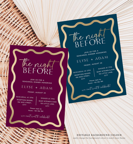 Wave Black Gold | Printable Rehearsal Dinner Invitation Template