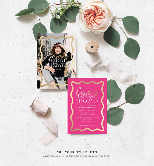 Wave Hot Pink Gold | Printable Bridal Shower Invitation Template