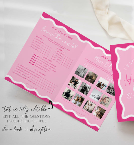 Wave Hot Pink | Printable Baby Shower Games Booklet Template