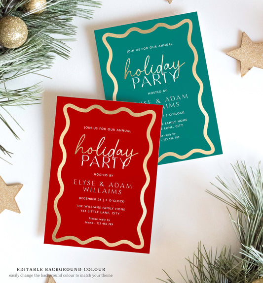 Wave Red Gold | Printable Holiday Party Invitation Template