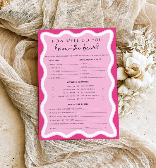Wave Hot Pink | Printable Bridal Shower Trivia Game Template