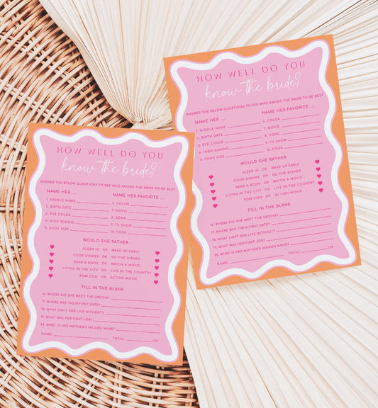 Wave Pink Orange | Printable Bridal Shower Trivia Game Template