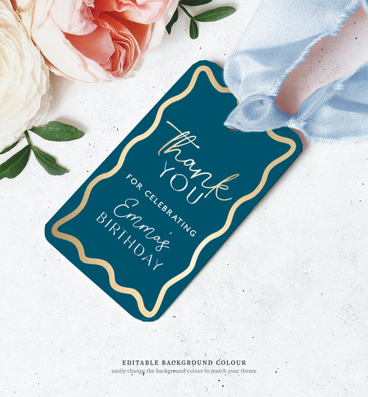 Wave Hot Pink Gold | Printable Thank You Favour Tag Template