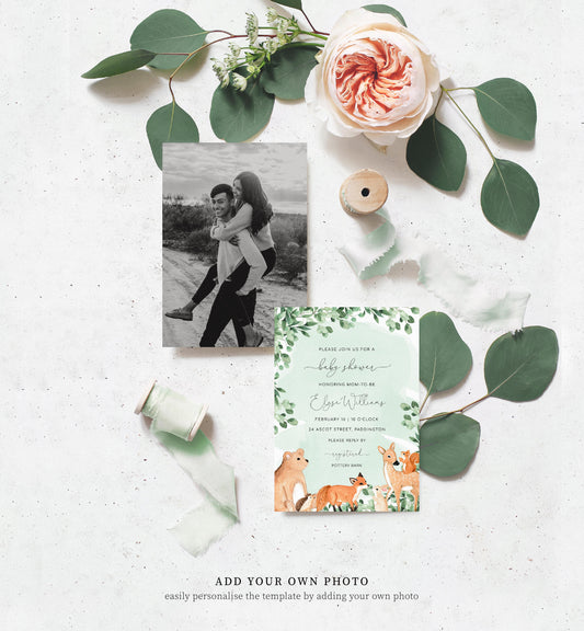 Woodland Animals Green | Printable Baby Shower Invitation Suite