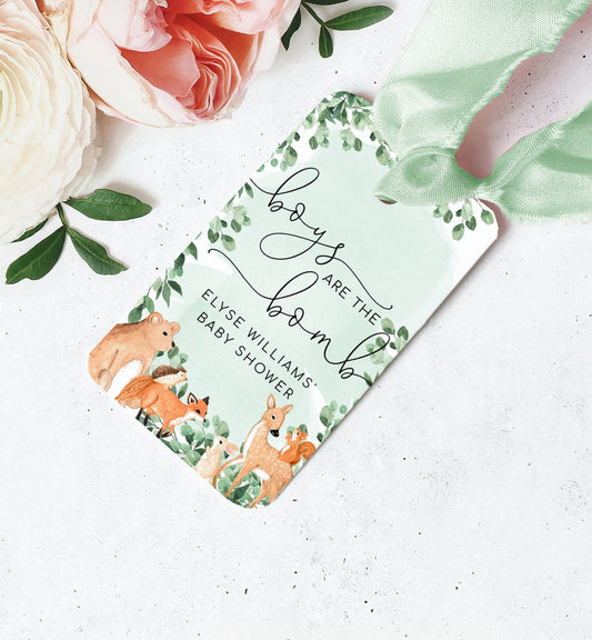Woodland Animals Green | Printable Bath Bomb Favour Tags
