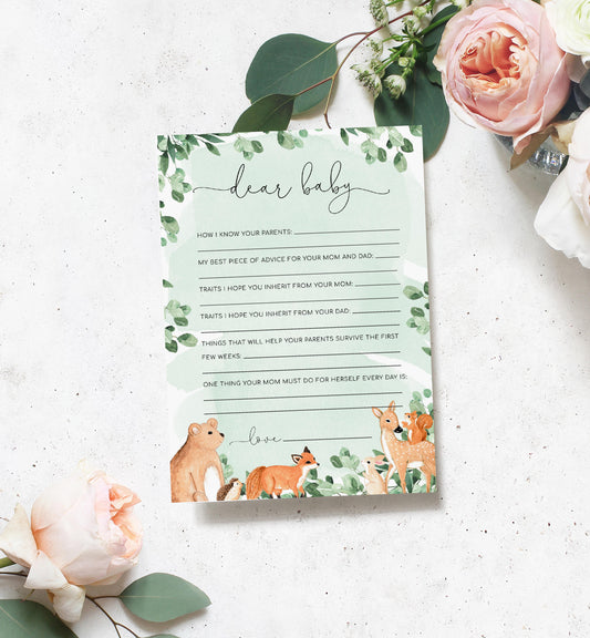 Woodland Animals Green | Printable Dear Baby Shower Game