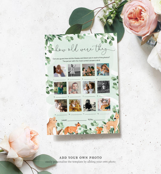 Woodland Animals Green | Printable How Old Were They Baby Photo Shower Game