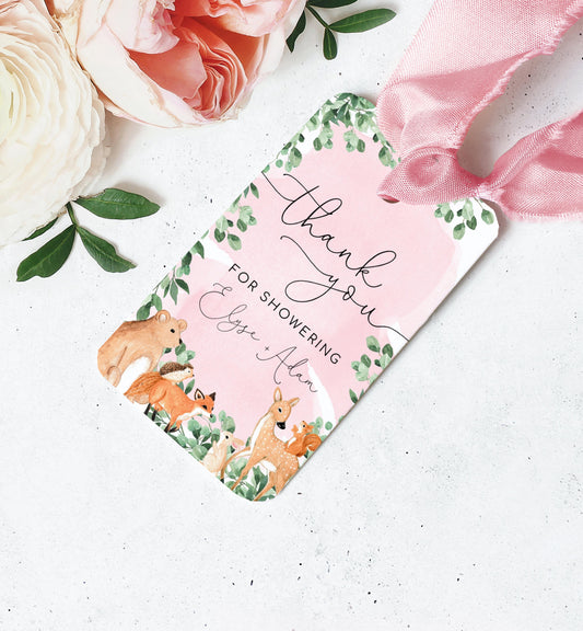 Woodland Animals Pink | Printable Thank You Favour Tags