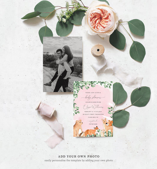 Woodland Animals Pink | Printable Baby Shower Invitation Suite