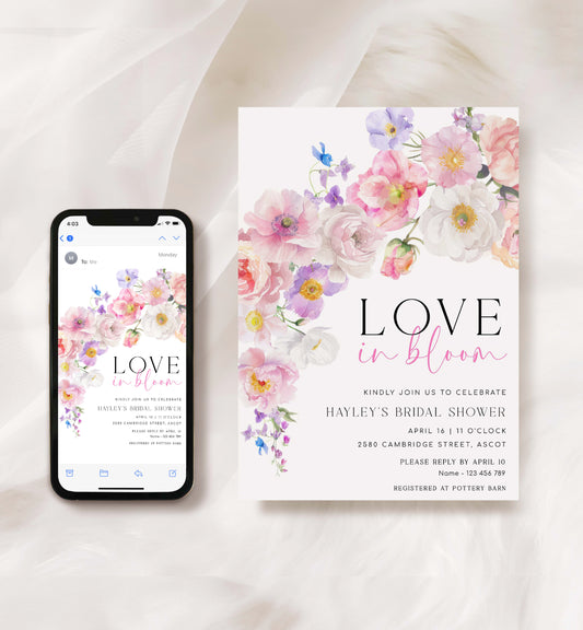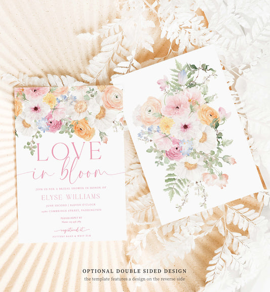 Millie Floral White | Printable Love In Bloom Bridal Shower Invitation Template