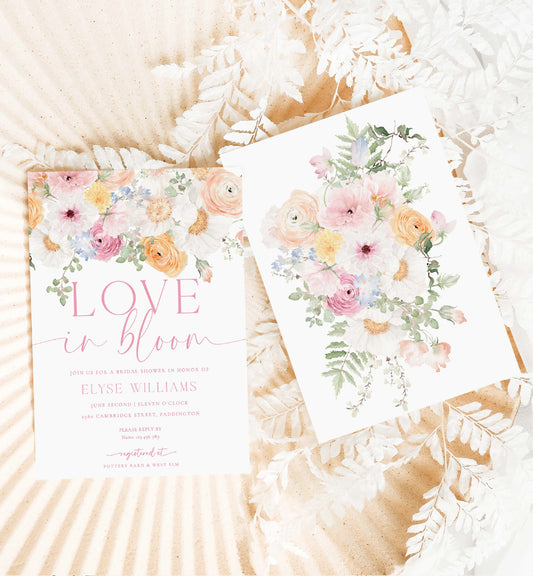 Millie Floral White | Printable Love In Bloom Bridal Shower Invitation Suite Template