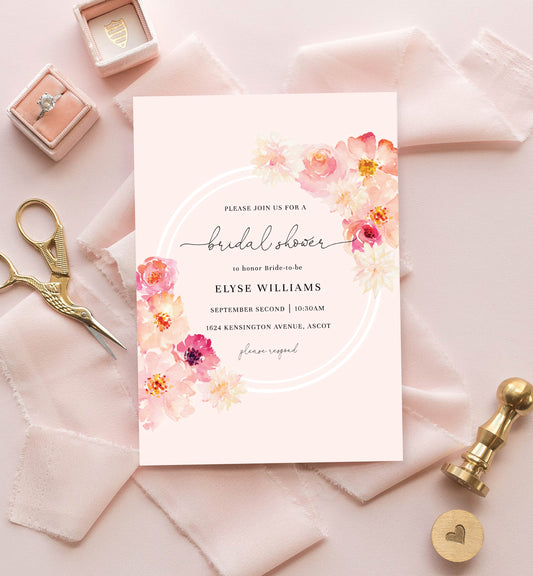 Abbieville Floral Pink | Printable Bridal Shower Invitation Suite Template
