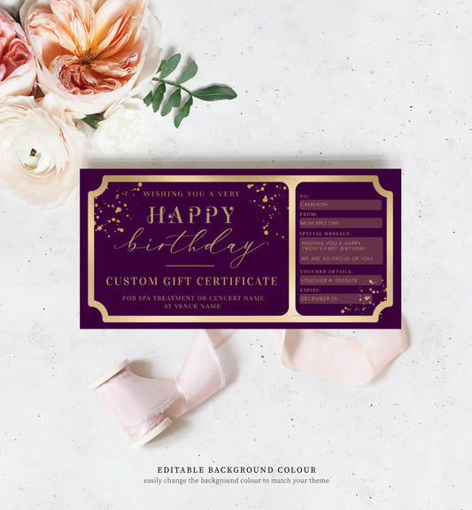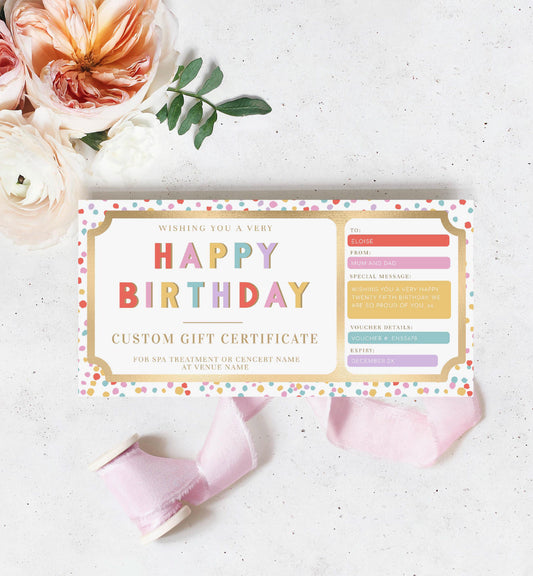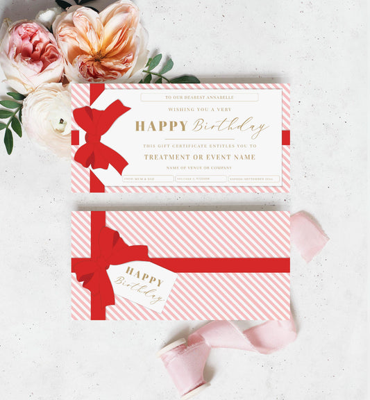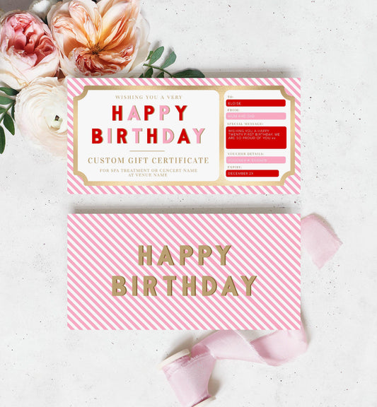 Stripe Pink Red | Printable Birthday Custom Gift Voucher