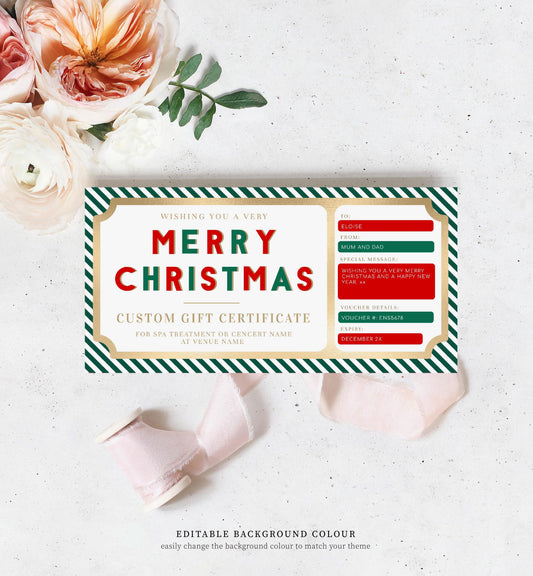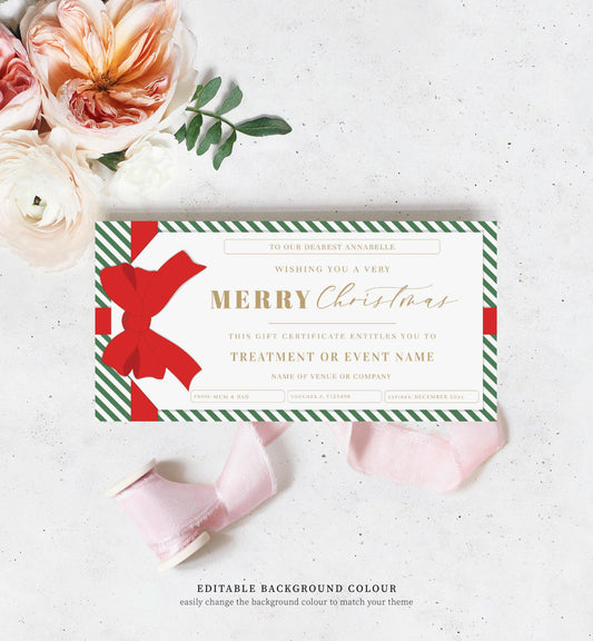 Stripe Green Red | Printable Christmas Custom Gift Voucher