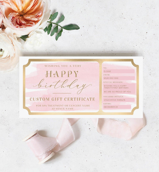 Watercolour Pink | Printable Custom Gift Voucher Template