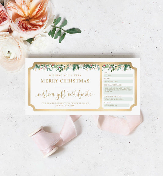 Ferras Greenery | Printable Christmas Custom Gift Voucher Template