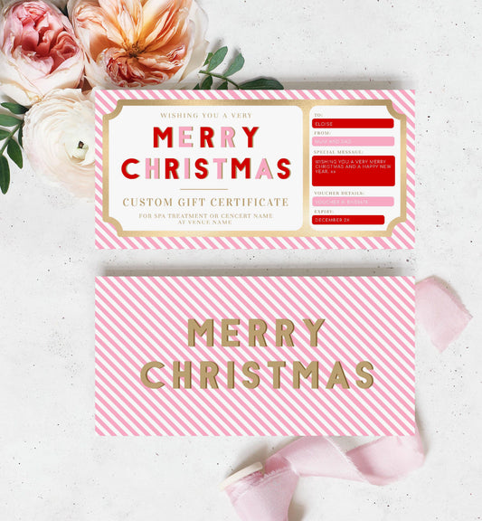 Stripe Pink Red | Printable Christmas Custom Gift Voucher
