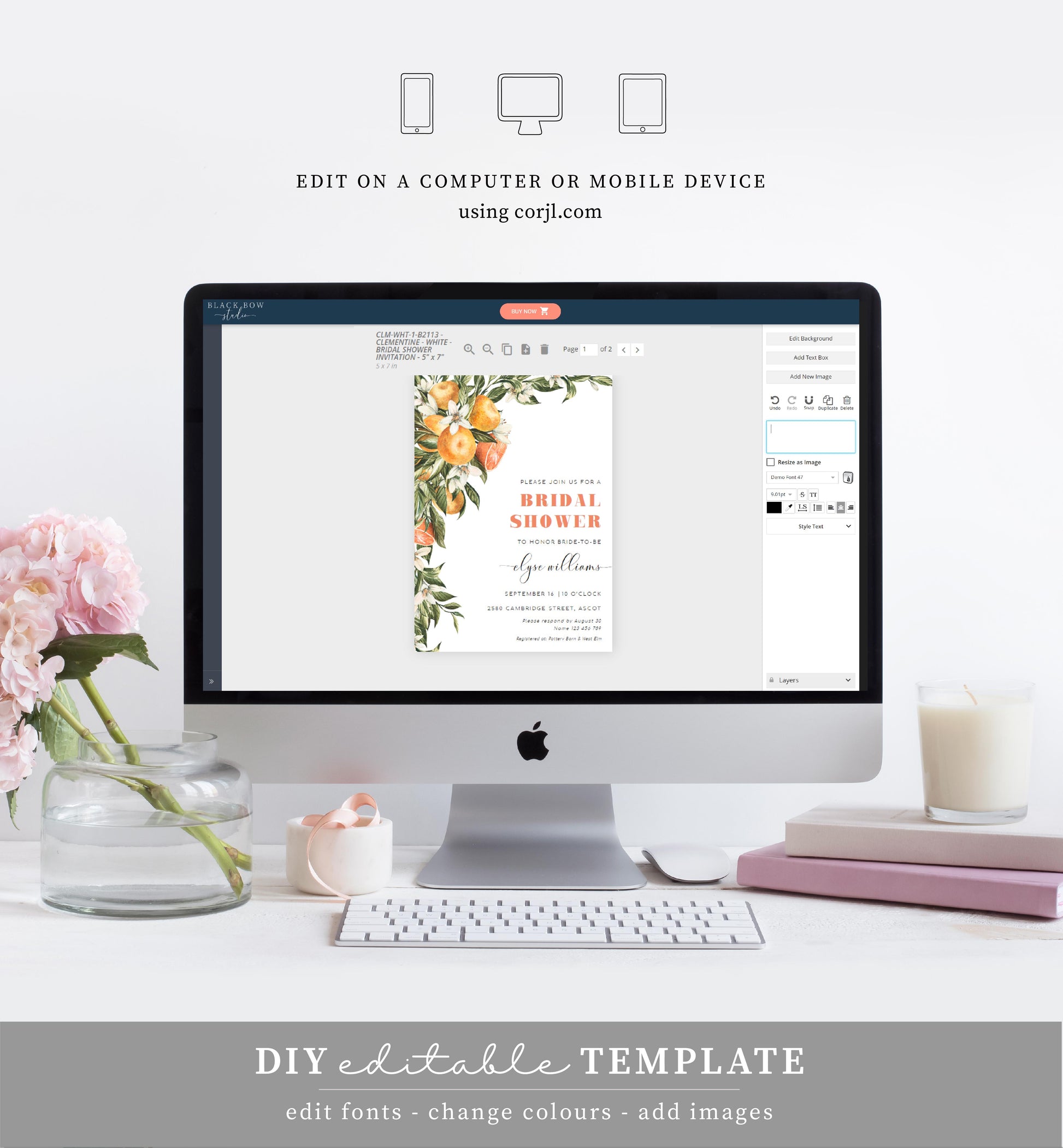 This is a do-it-yourself template editable using corjl.com – an online template editing platform that allows you to personalise your template in your internet browser – No need to install special software or download fonts. The templates are available as soon as your order has been processed.