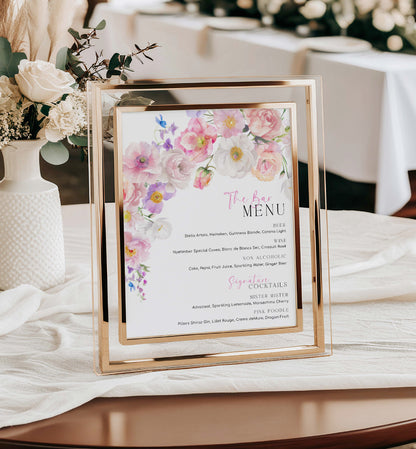 The Eloise Floral editable bar menu printable template is perfect for Weddings, Engagements, and Baby and Bridal Showers. The hot pink wildflower floral design together with the modern fonts is the perfect combination to set the tone for your event. The template features fully editable text.