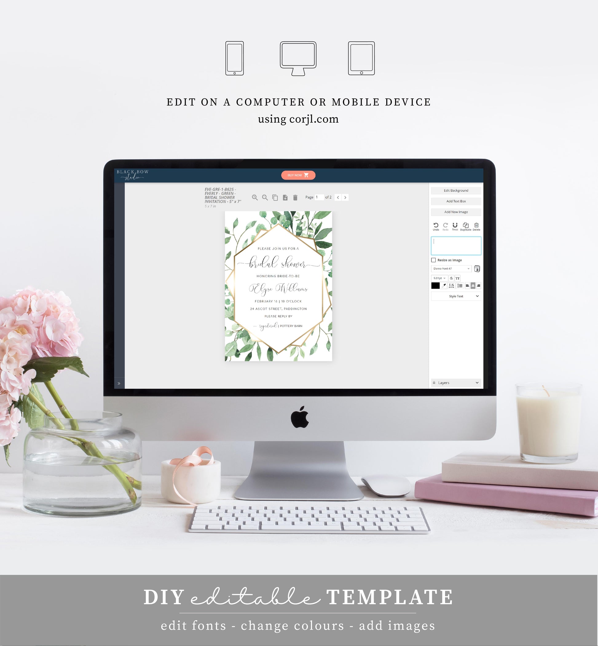 This is a do-it-yourself template editable using corjl.com – an online template editing platform that allows you to personalise your template in your internet browser – No need to install special software or download fonts. The templates are available as soon as your order has been processed.