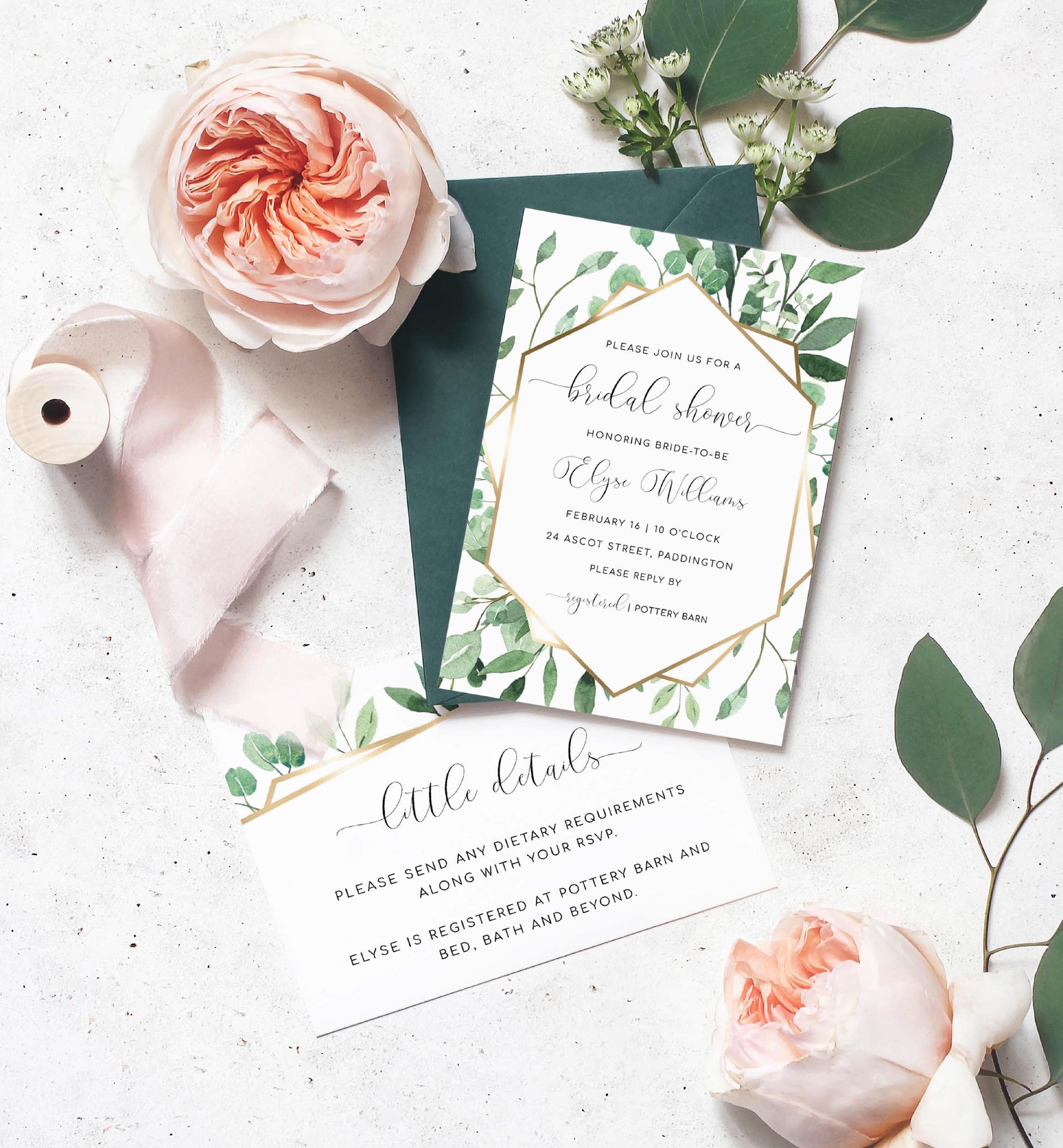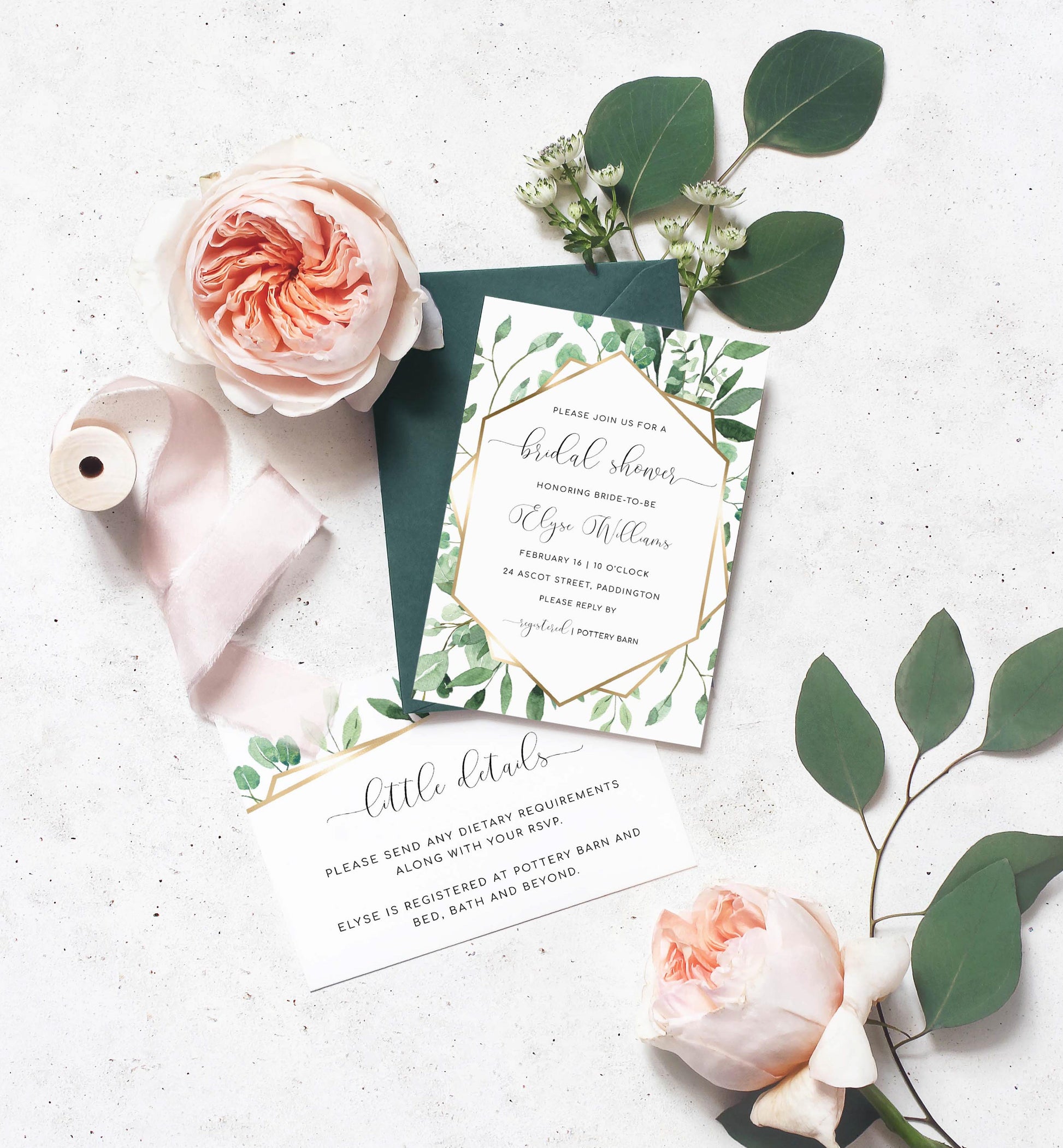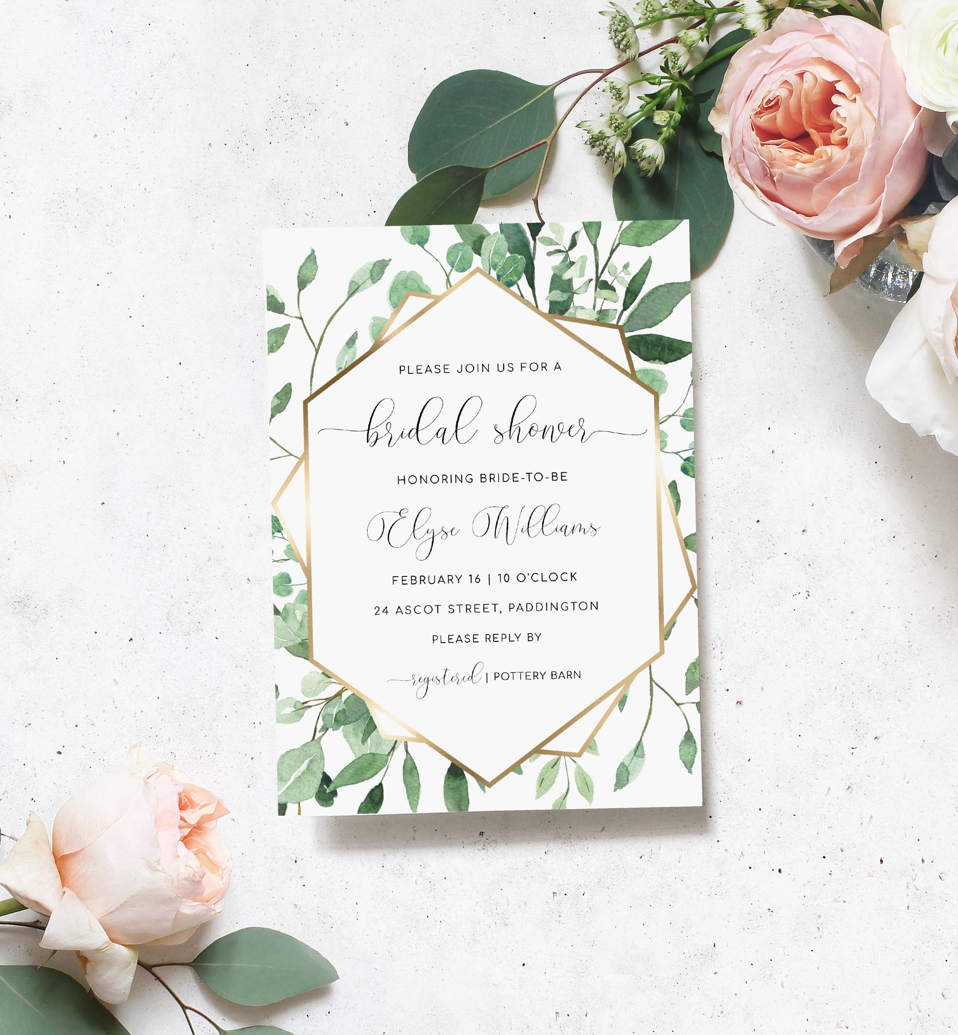 Everly Greenery | Printable Bridal Shower Invitation Suite Template