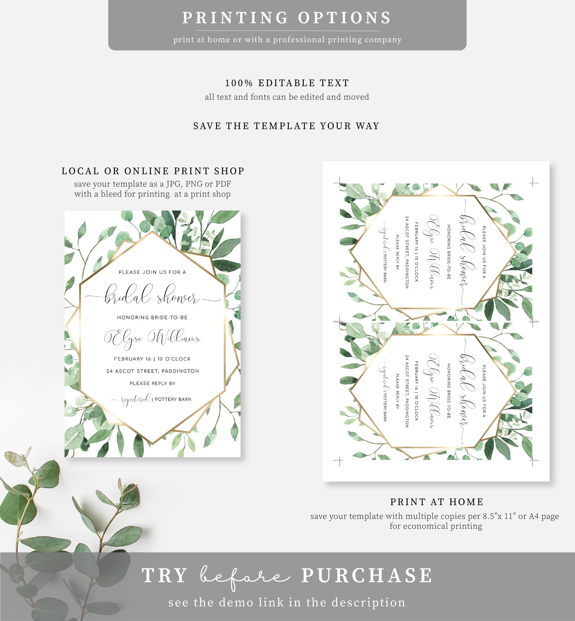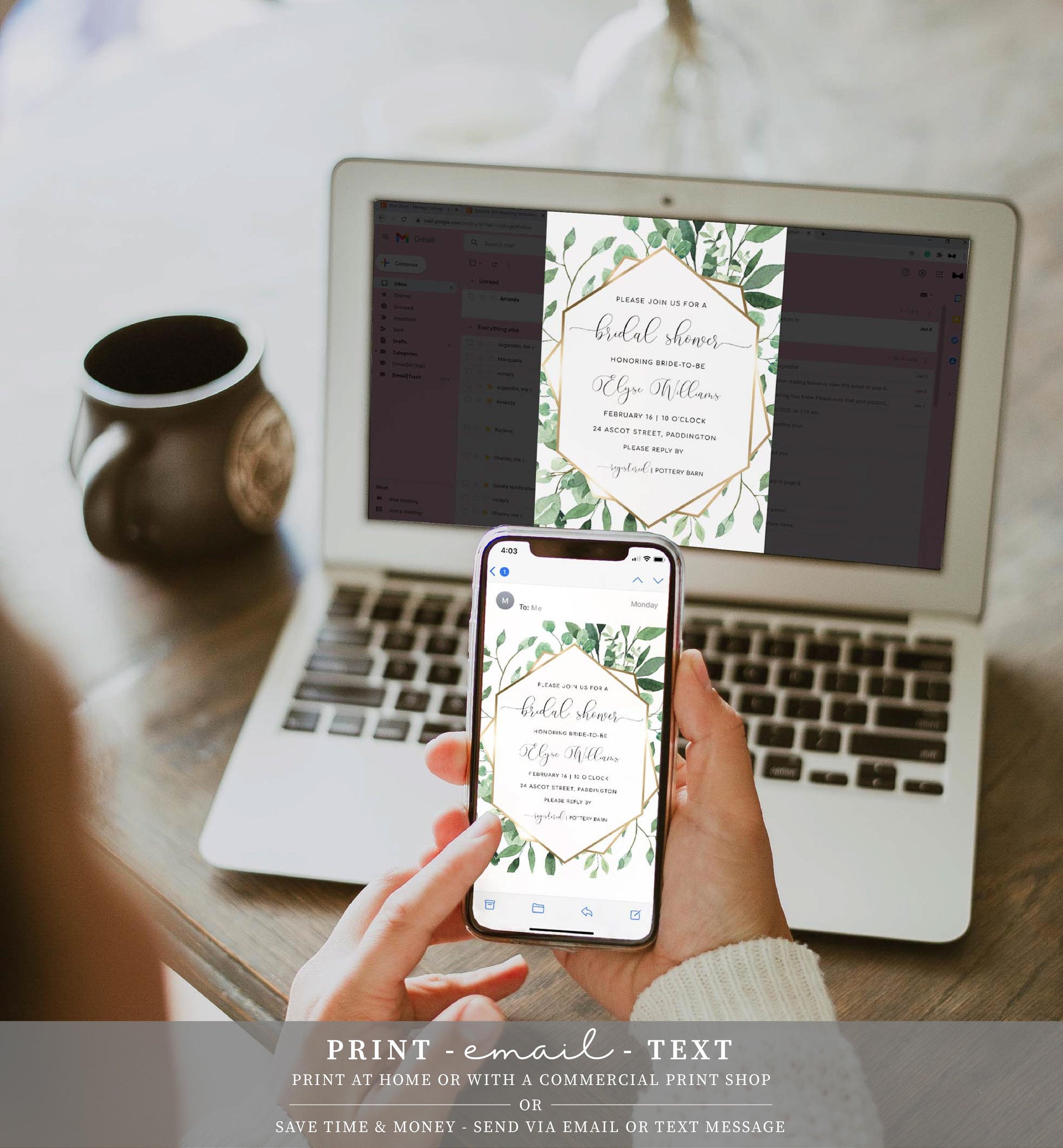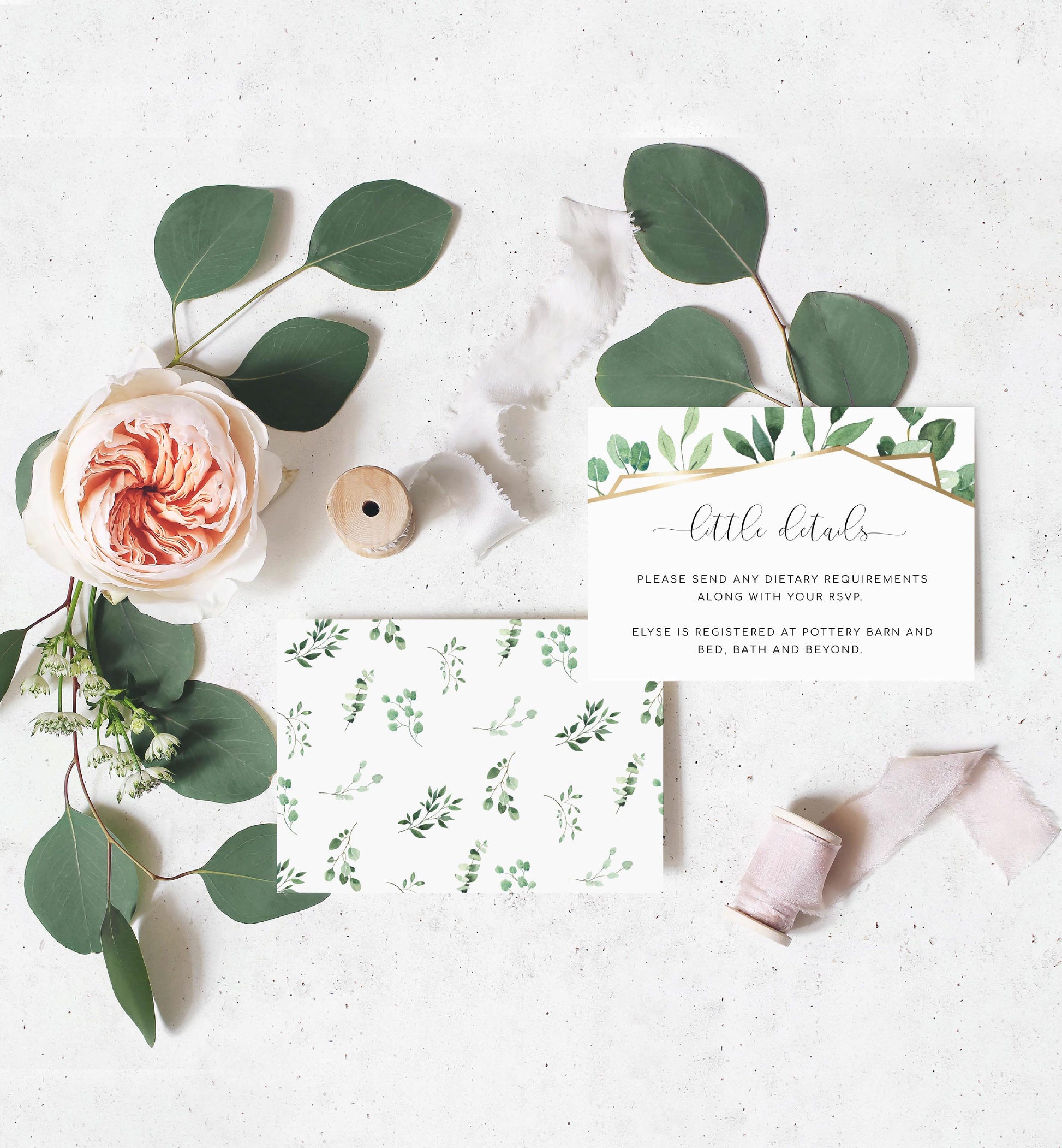 Everly Greenery | Printable Bridal Shower Invitation Suite Template