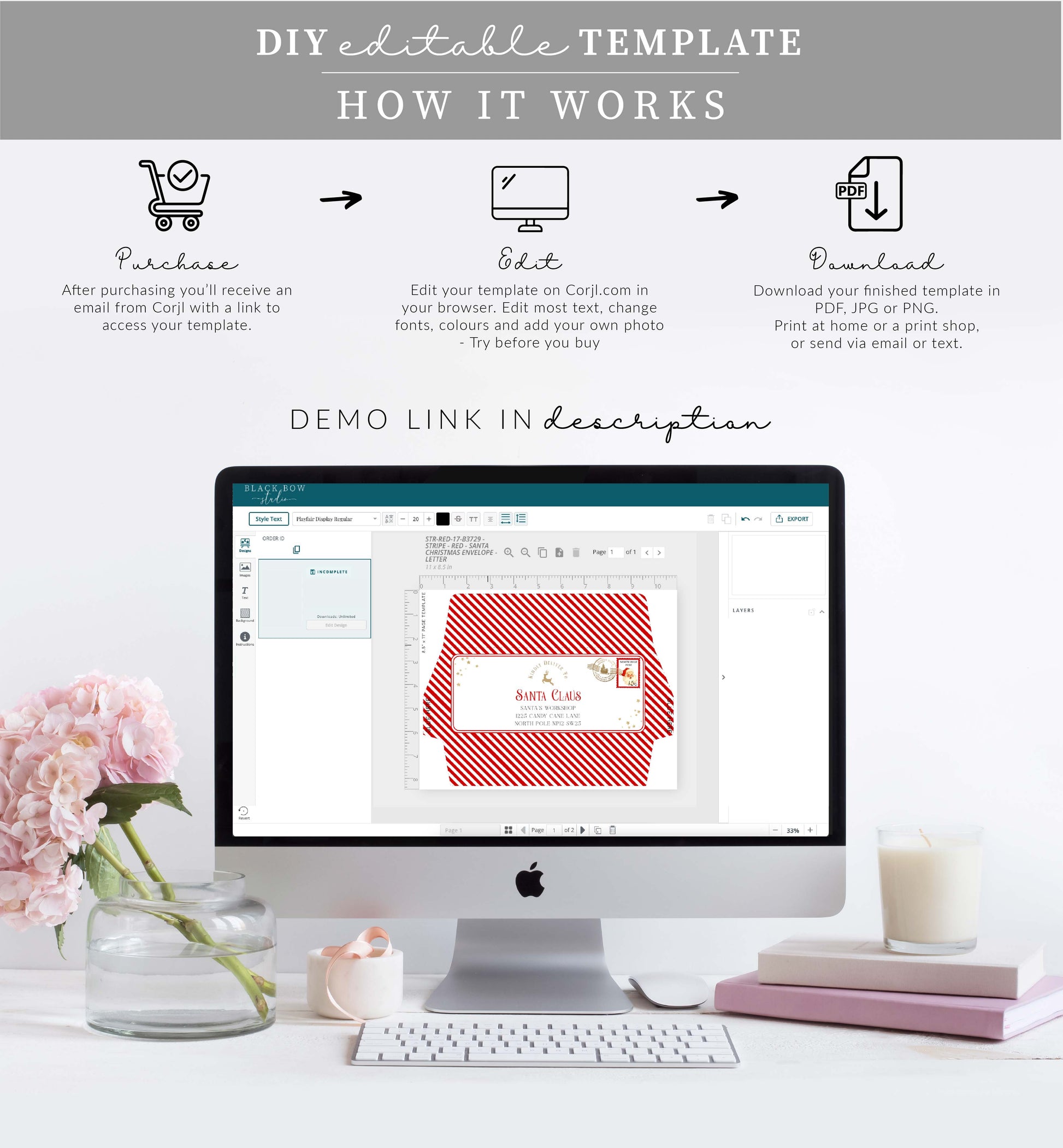 This is a do-it-yourself template editable using corjl.com – an online template editing platform that allows you to personalise your template in your internet browser – No need to install special software or download fonts. The templates are available as soon as your order has been processed.