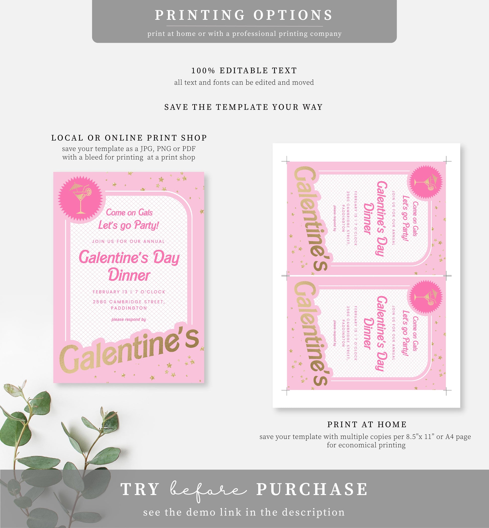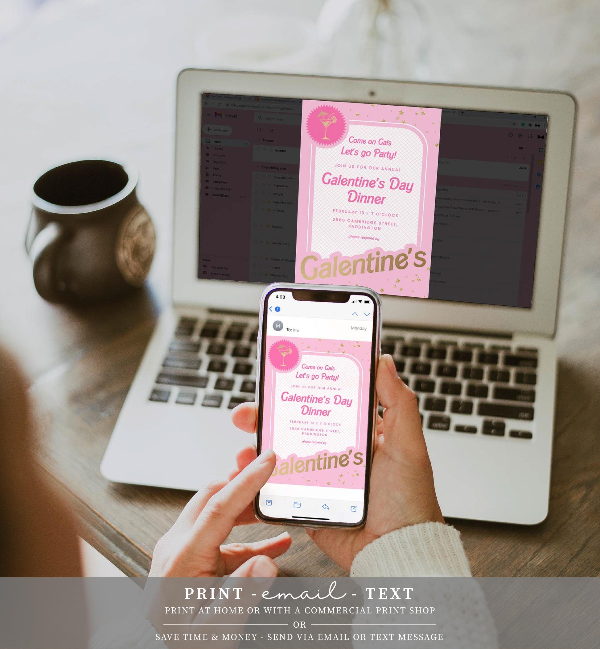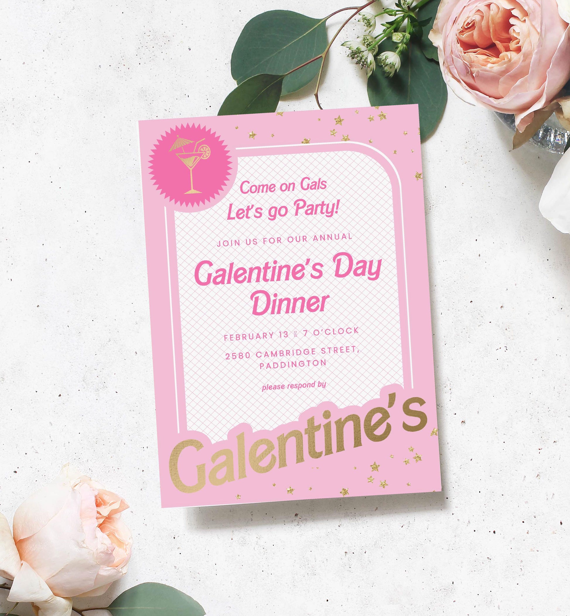 Barbie Party Pink Gold | Printable Galentine's Day Invitation Template