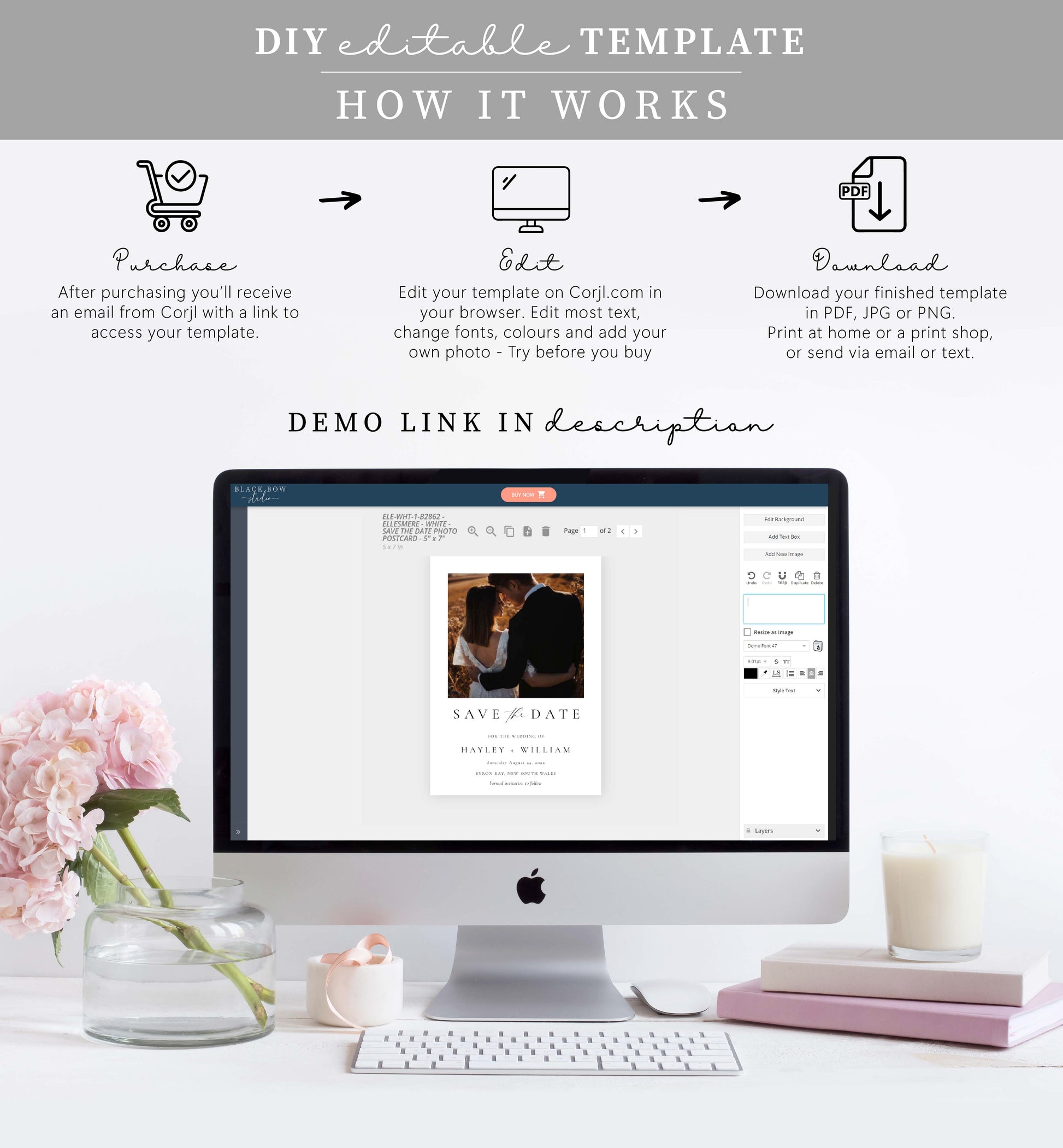 This is a do-it-yourself template editable using corjl.com – an online template editing platform that allows you to personalise your template in your internet browser – No need to install special software or download fonts. The templates are available as soon as your order has been processed.