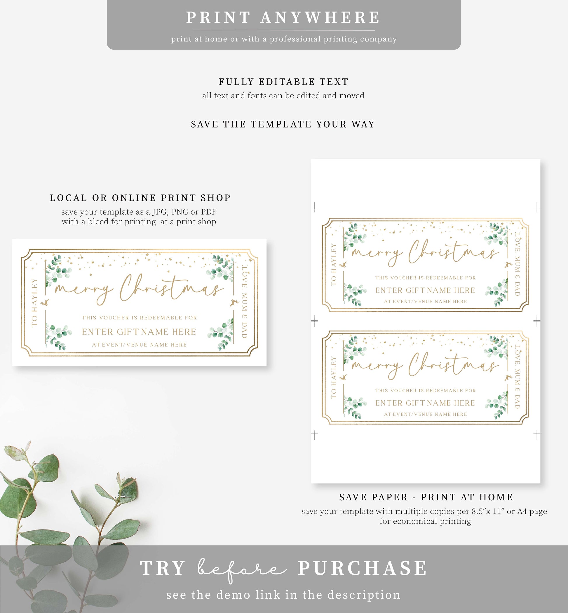 Ferras Greenery | Printable Christmas Custom Gift Voucher Template