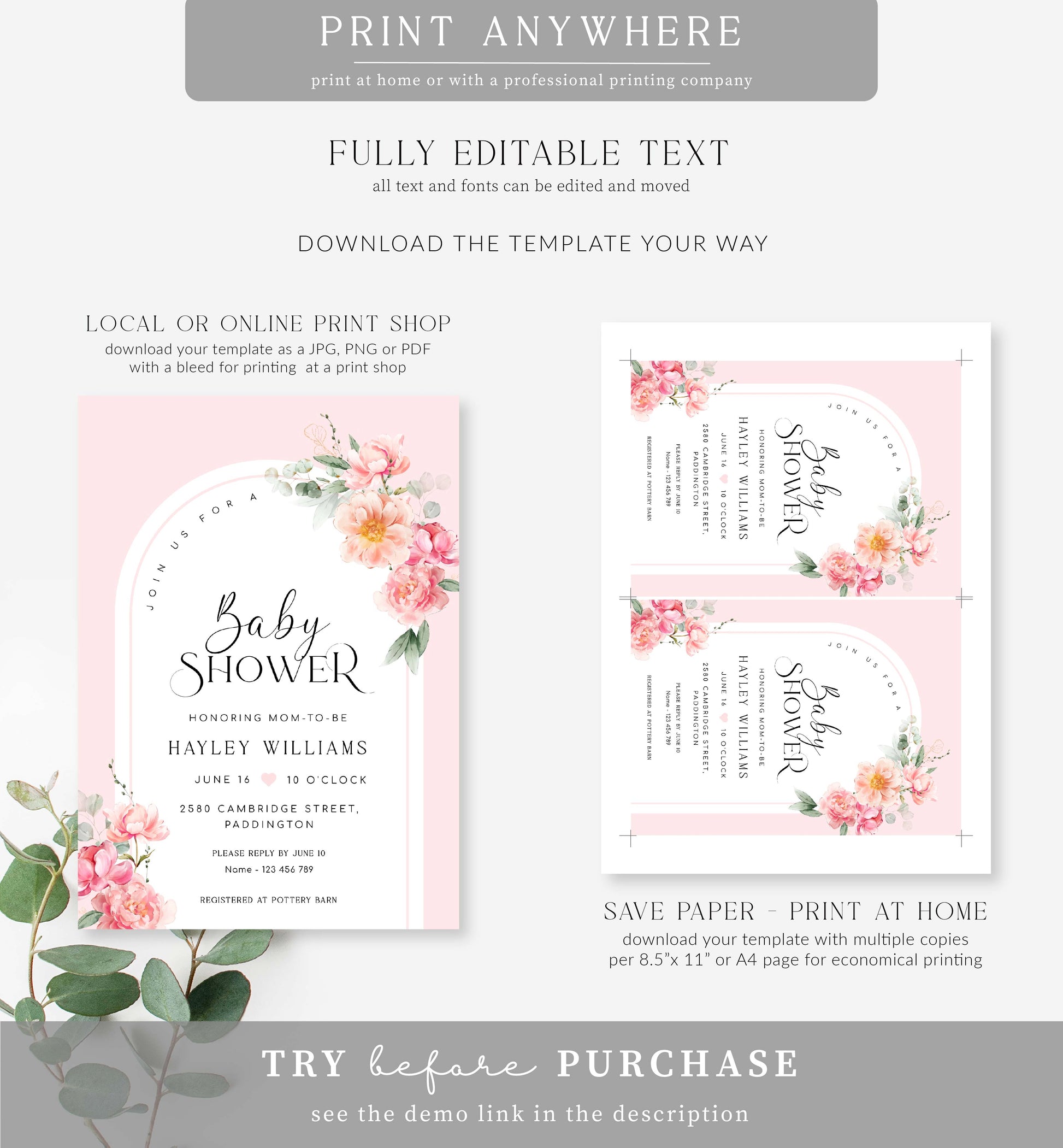 Piper Floral Pink | Printable Baby Shower Invitation Template