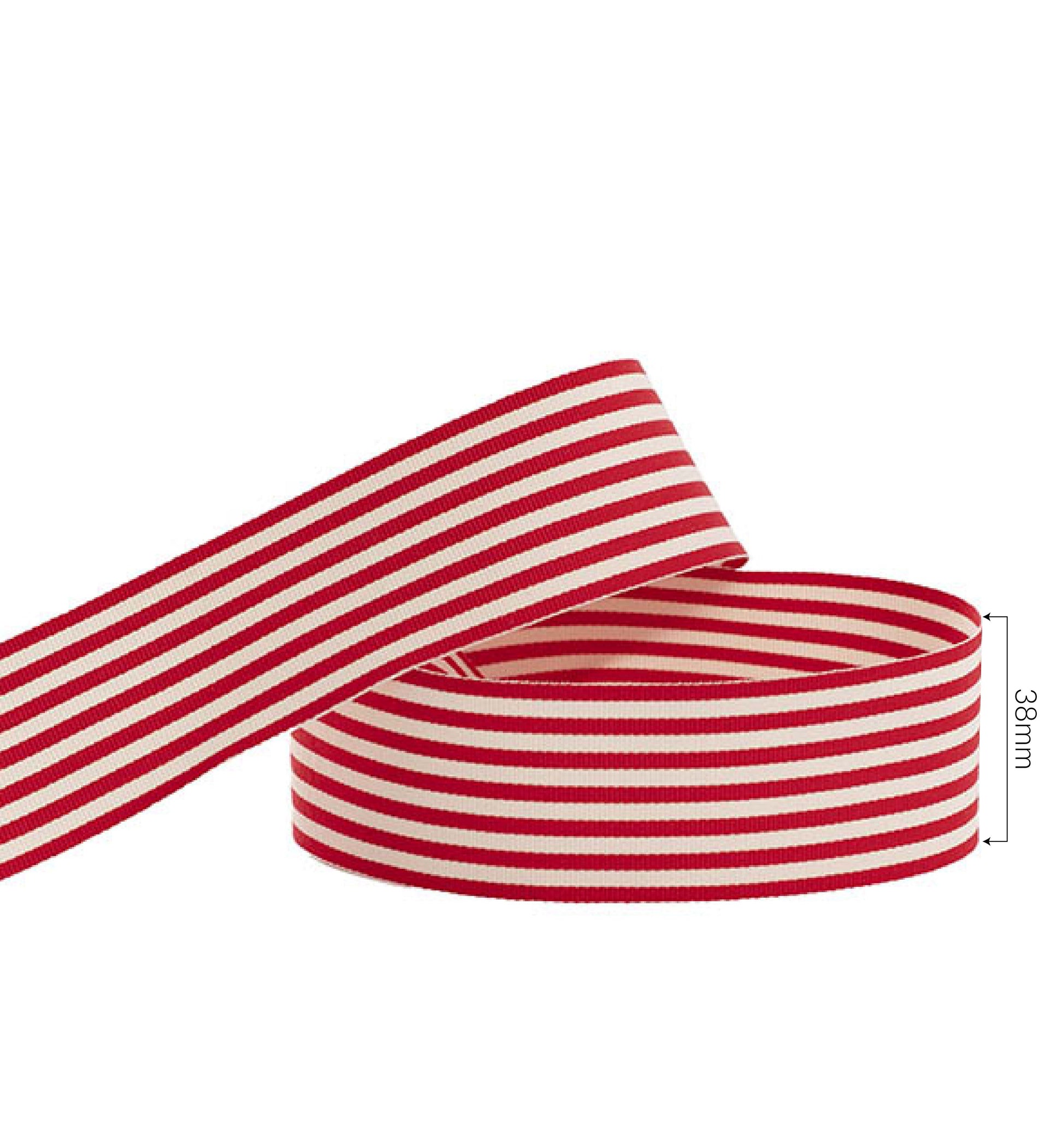 Add a festive, classic touch to your gift wrapping, craft projects, and décor with this beautiful red and white striped grosgrain ribbon. Measuring 38mm wide, it features a timeless candy-cane stripe design — perfect for Christmas wrapping, holiday decorations, and cheerful year-round styling.