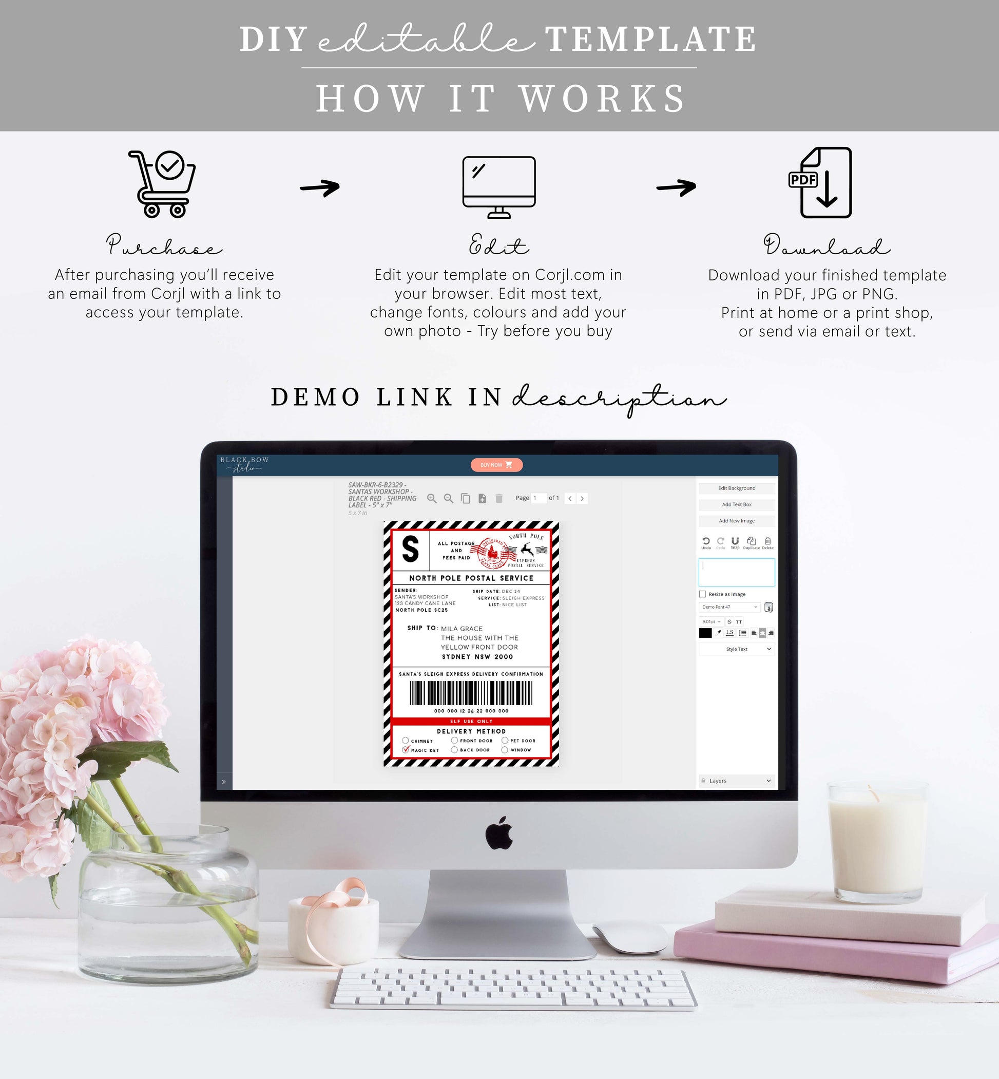 This is a do-it-yourself template editable using corjl.com – an online template editing platform that allows you to personalise your template in your internet browser – No need to install special software or download fonts. The templates are available as soon as your order has been processed.